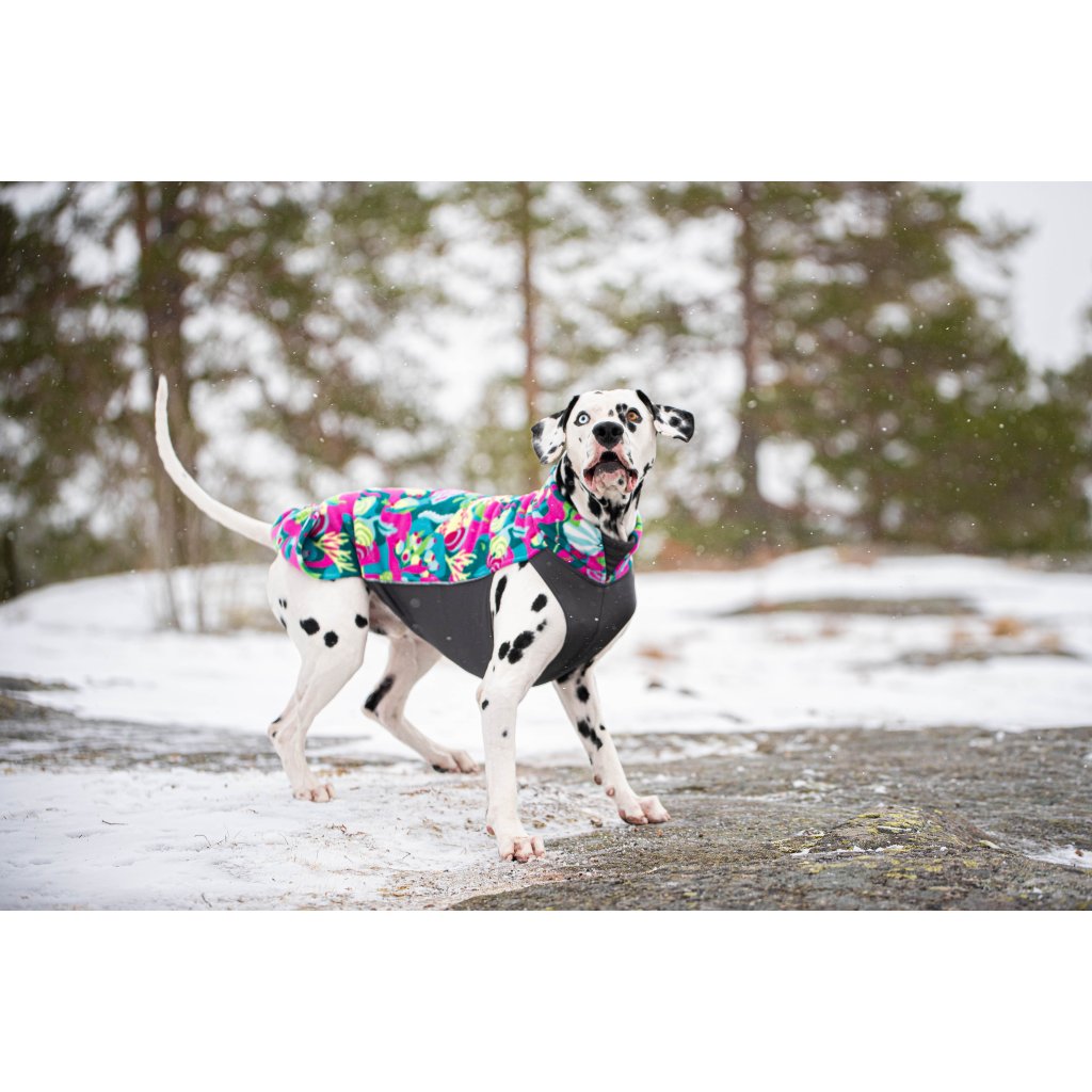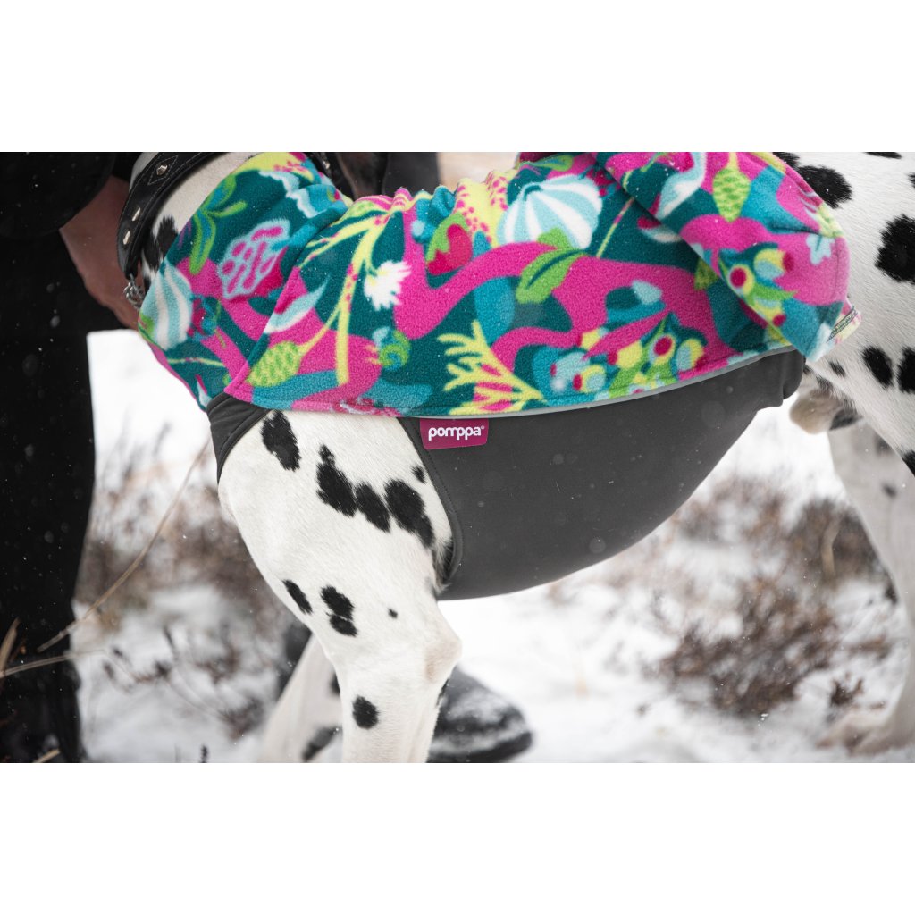 Je vyrobena z elastických a antistatických materiálů, díky čemuž se jednoduše obléká. Materiály použité na výrobu mikiny Jumppa mají výborné izolační vlastnosti a absorbují vlhkost, díky čemuž se bude váš pes cítit pohodlně i v deštivém počasí. Jumppa Pomppa je multifunkční oblečení, které se dá používat po celý rok.