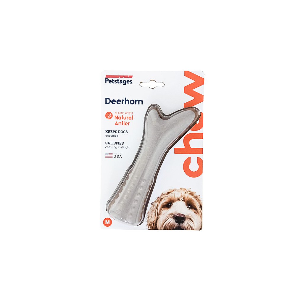 Tato hračka dokonale kombinuje sílu syntetického materiálu a přírodního paroží, jehož moučka je přidávána do složení, aby hračka měla typickou vůni a chuť, kterou váš pes bude milovat. Žvýkací hračky Petstages jsou naprosto bezpečné, jsou robustní, nelámou se a nevytváří ostré hrany, proto jsou bezpečnější než skutečné parohy. Jsou vyráběny v USA s péčí, bez škodlivého olova a ftalátů.