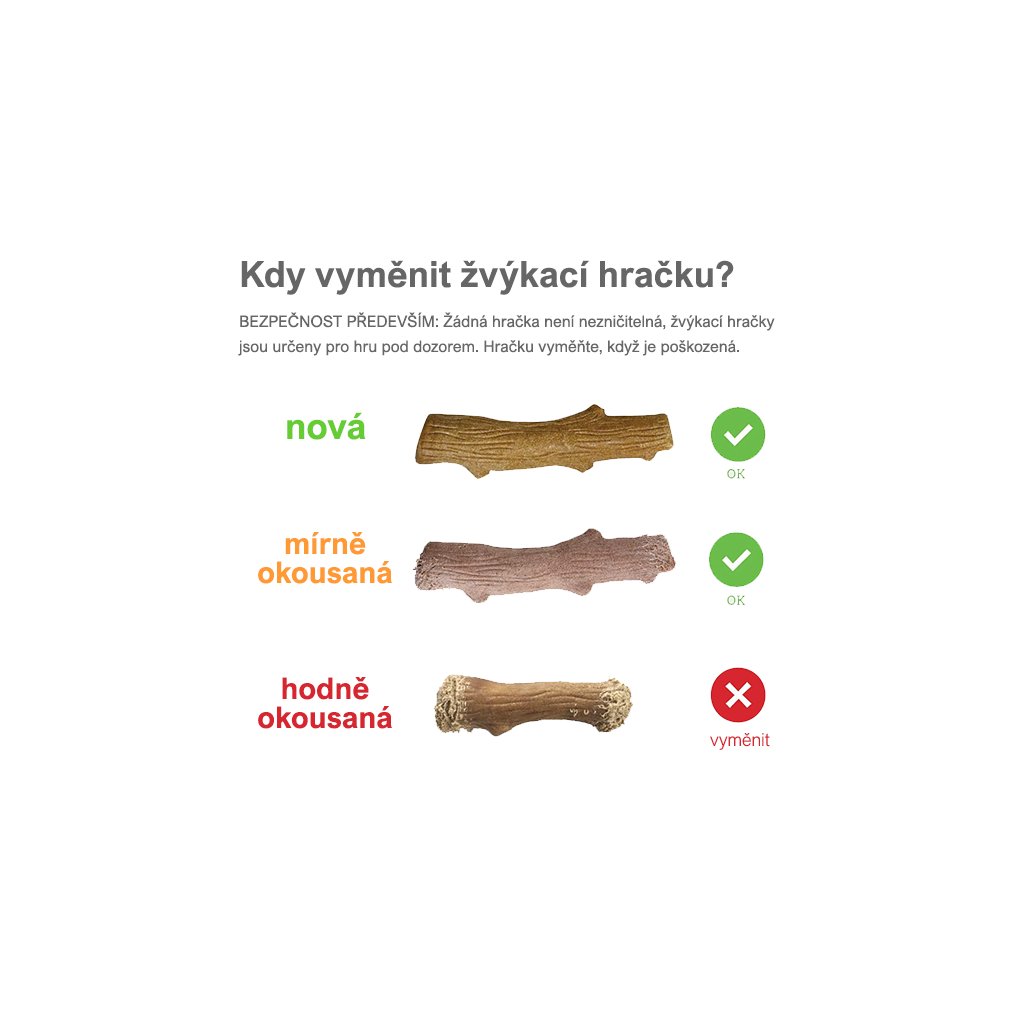 Žvýkací hračka pro psy s tvarem, chutí a vůní opravdového dřeva uspokojí žvýkací potřeby, čistí zuby a zažene nudu. Nemůžeš si pomoct a máš potřebu neustále něco kousat? Tuhle hračku můžeš žvýkat bezpečně a zdravě od rána do večera.